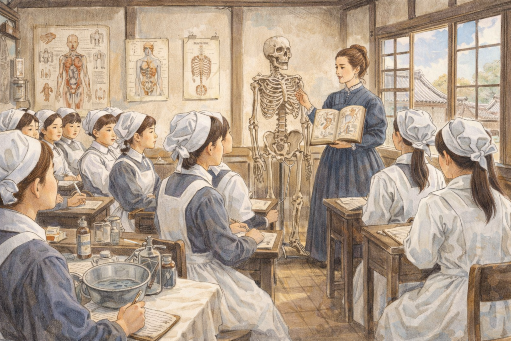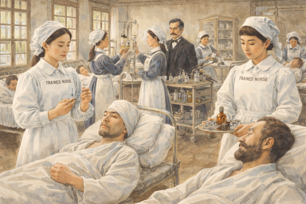 この状況を変えようとしたのが、フローレンス・ナイチンゲールが確立した近代看護学です。日本では1885年(明治18年)に最初の近代的な看護婦養成所が誕生。ドラマの主人公たちはその第一世代にあたります。